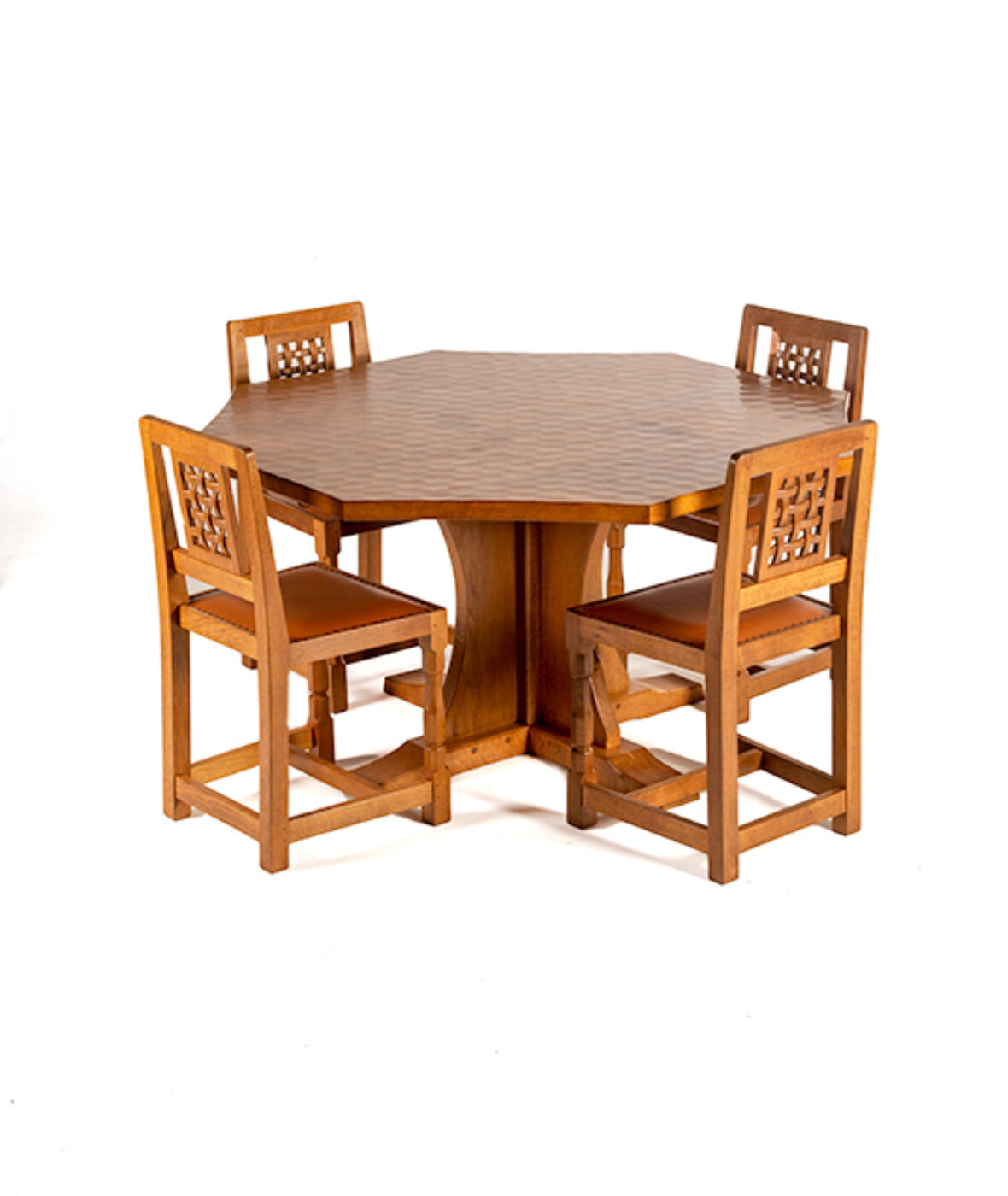 Classic Mouseman 4'2"Octagonal Dining Table & Chairs - SOLD
