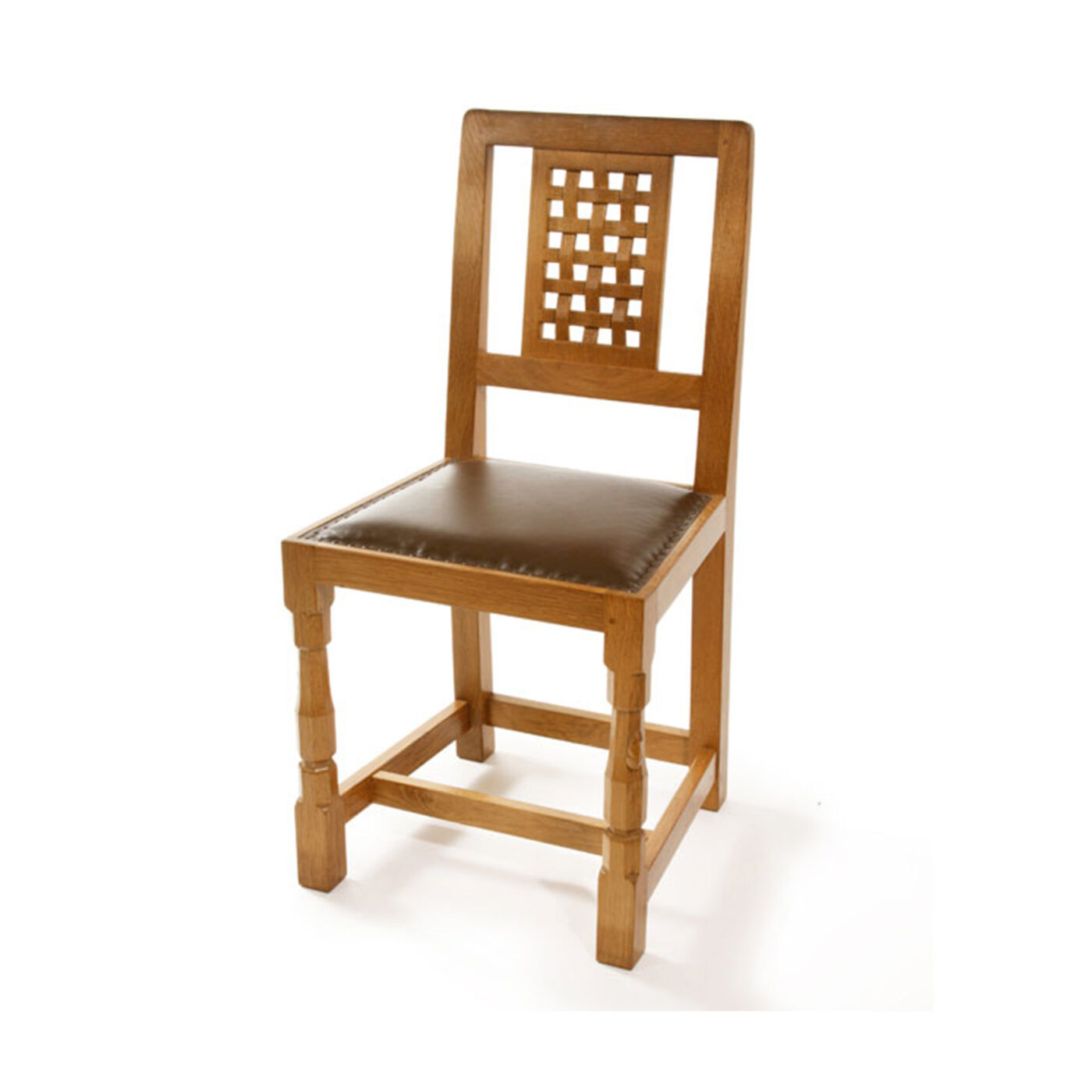 This is a slightly higher chair, again with the carved lattice panel at the back and octagonal front legs, with a flame retardant foam seat covered with cow hide and fixed with a choice of antique brass or chrome upholstery tacks.