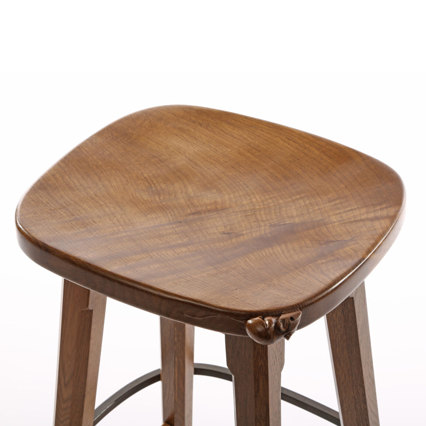 Mouseman Oak Low Bar Stool