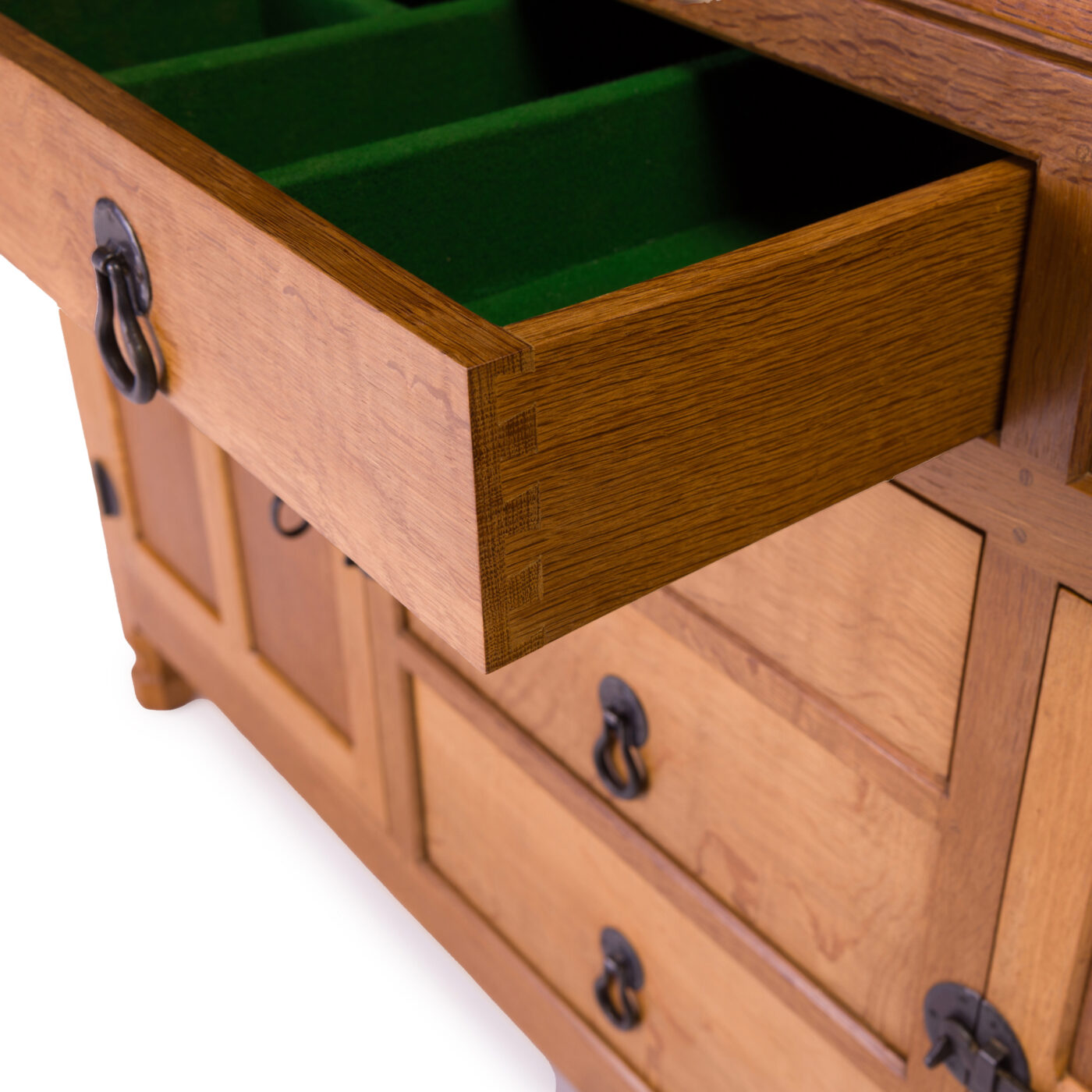 The Sideboard has been fully restored in our workshops at Kilburn and is in very good condition displaying a deep rich mellow Golden Oak colour to the entire Sideboard.