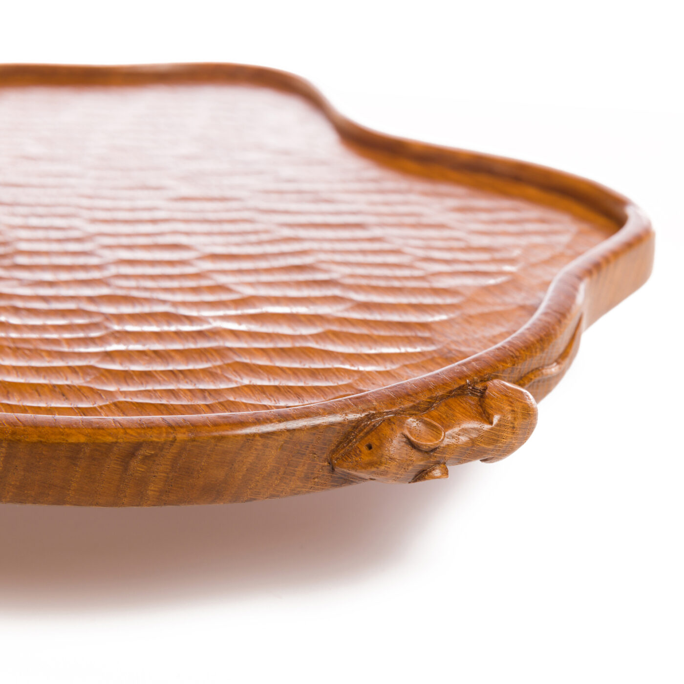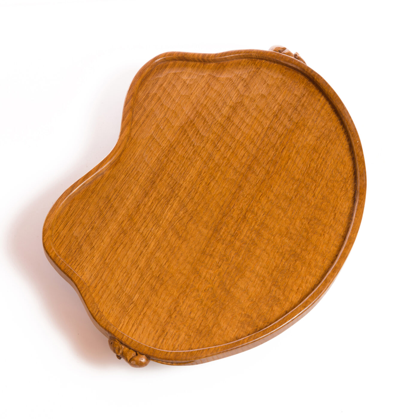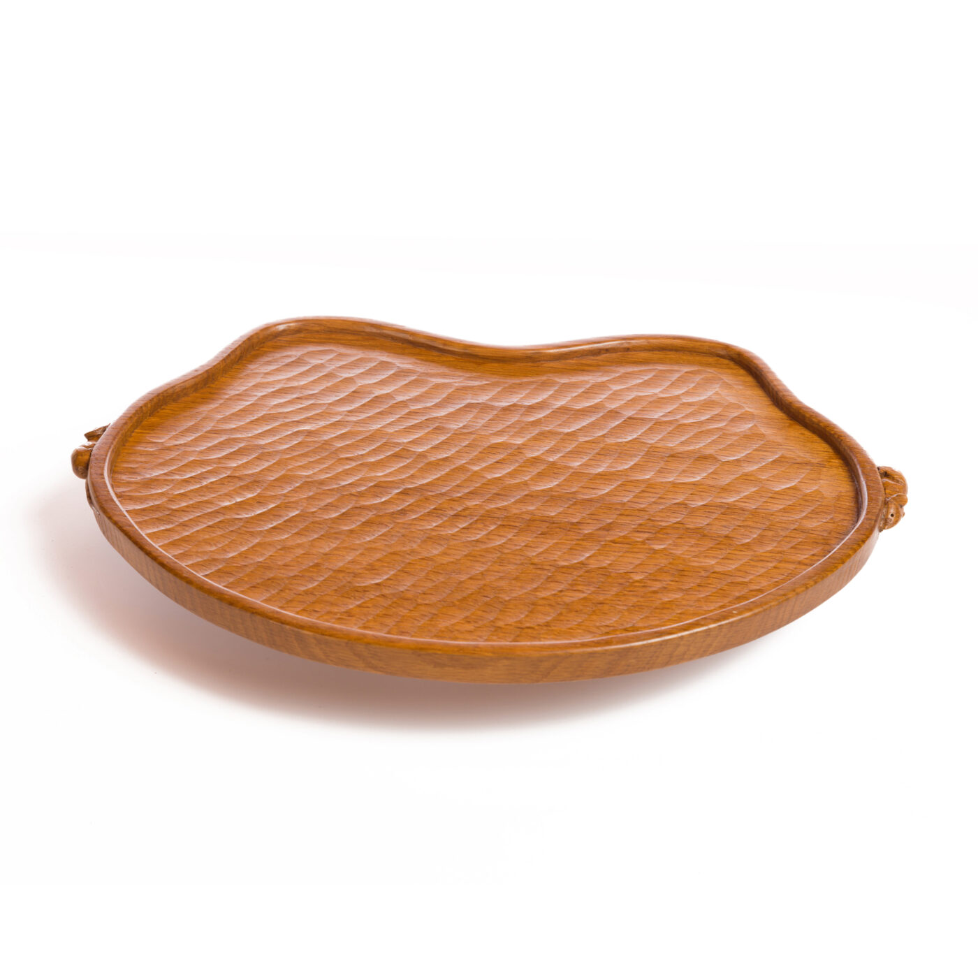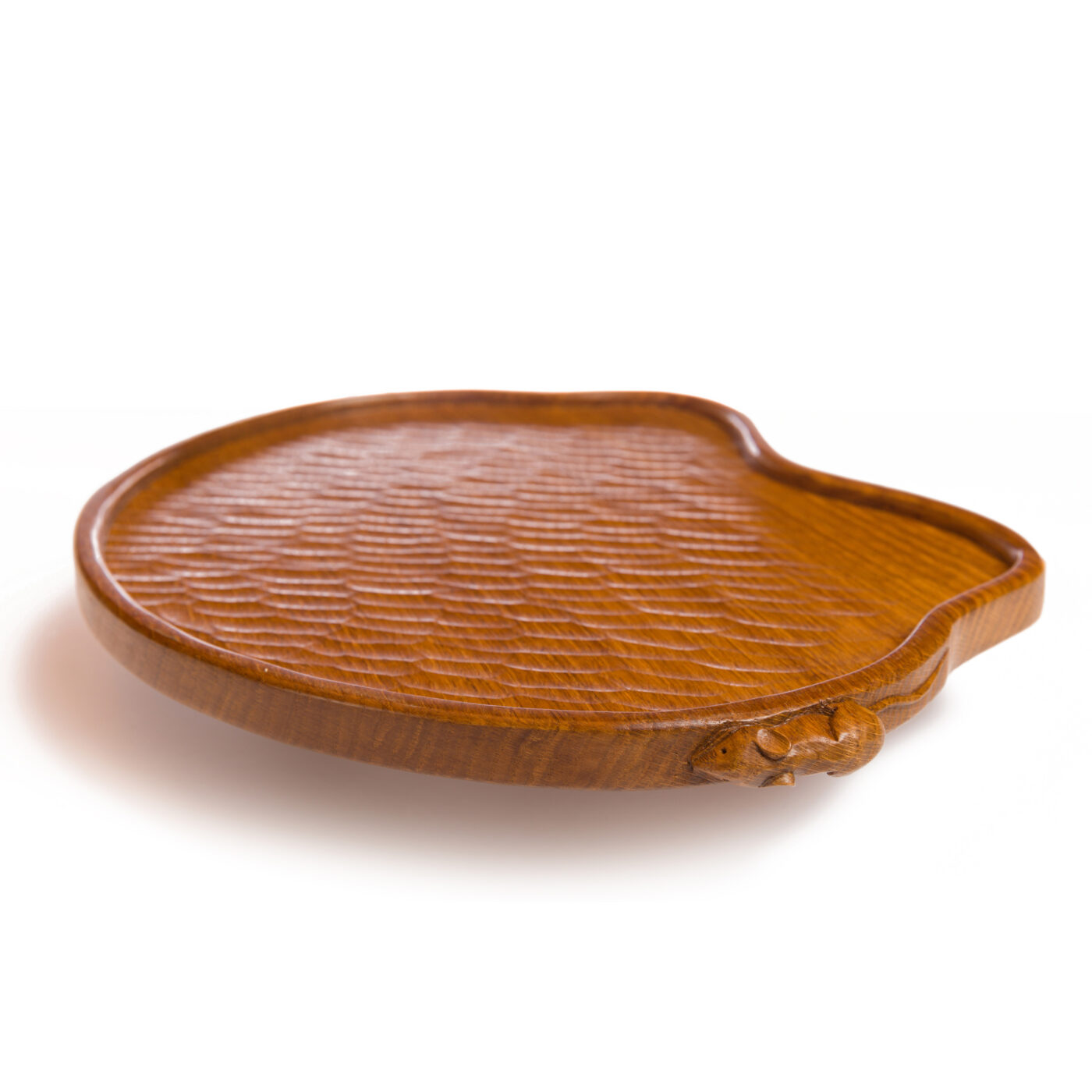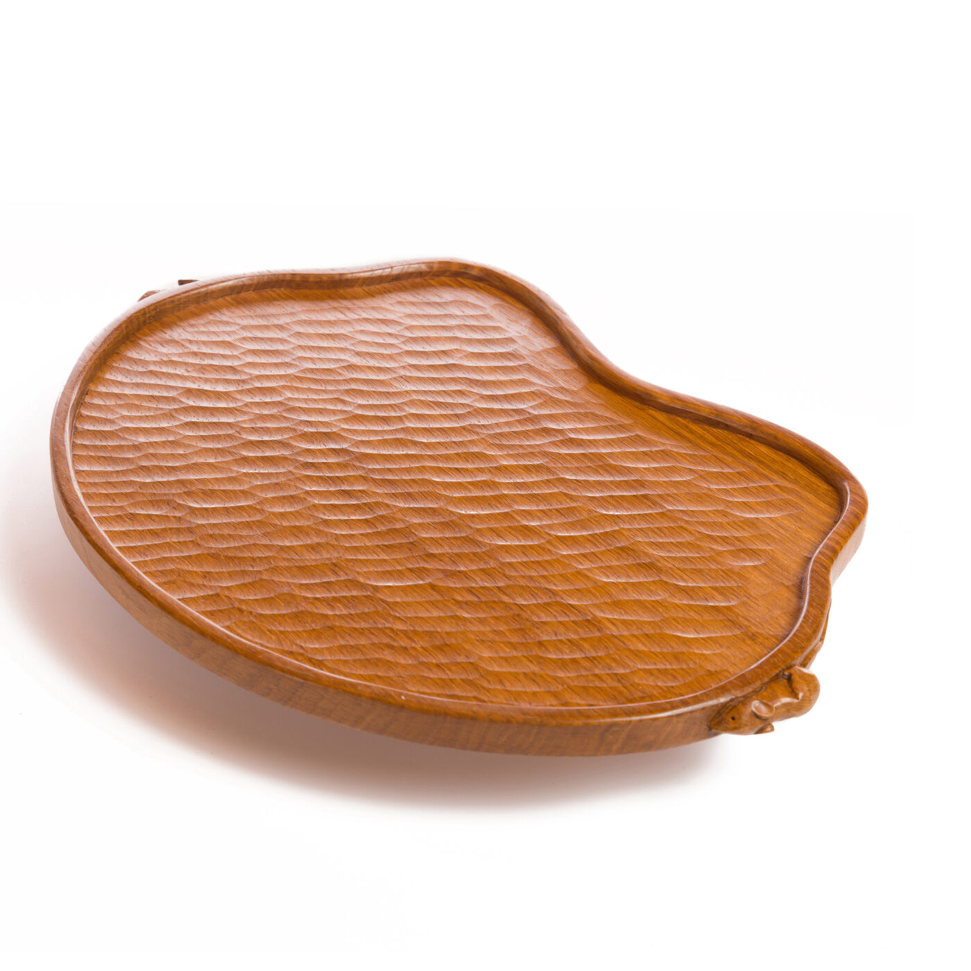 Hand carved in English Oak, this mouse-handled tray with its hand tooled surface is an elegant way to serve tea, drinks or nibbles.